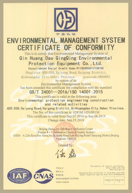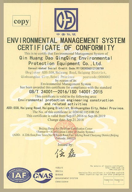 環(huán)境管理體系認證正本中文